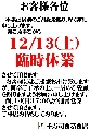 誠に勝手ながら12/13(土)は臨時休業させて頂きます。