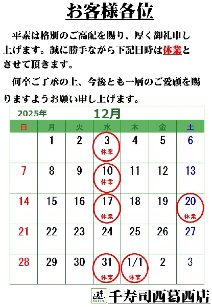 誠に恐れ入りますが、下記日程で臨時休業とさせていただきます。