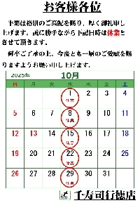誠に恐れ入りますが、下記日程で臨時休業とさせていただきます。